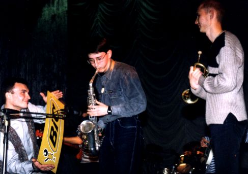 Весёлая стёбовая музыка, кажись, всё больше про зелёную волну, сами из Керчи (ты был в Керчи?..- Ред.), живут в Николаеве. На 2-хлетии РК состав был такой : вокалист, 2 гитариста, бас, клавиши, ударник, духовые. Стали Группой Года на Обойме-2000.