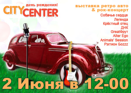 2 июня в рамках празднования годовщины торгово-развлекательного центра "City-Center" состоится выставка старинных автомобилей и рок-концерт с участием групп