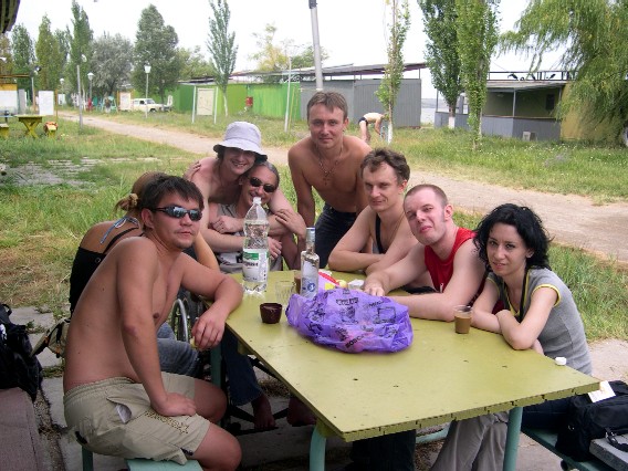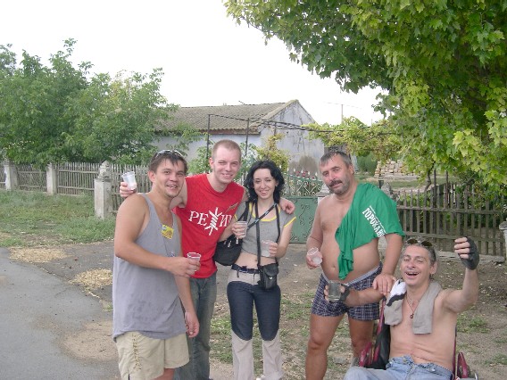 Пока на площадке проходил саундчек, мы успели познакомиться с вооружённым «калашом» дяденькой в беретеке, и выяснить что в этом мире есть люди, которые не прочь нажиться на бедных студентах, продавая им воздух древнегреческого, Богом забытого, навозом покрытого города - Ольвия. Почему именно воздухом? Да потому, что кроме выцвевшей травы, пары-тройки, покрытых помётом, булыжников и воздуха, там ничего нет. После непродолжительного путешествия по разрушенным площадям и храмам, спустившись к (не мытым) ладоням ласкового моря (лимана) мы сделали привал… Джяхнули зелёненького и полные сарказма, отправились созерцать подготовку музыкантов… Первыми кого мы встретили в стране чудес - была Кася, Катя и аккомпаниатор из театра Чкалова - некий Гуменный (имя запамятовал). Ребята, предвкушая